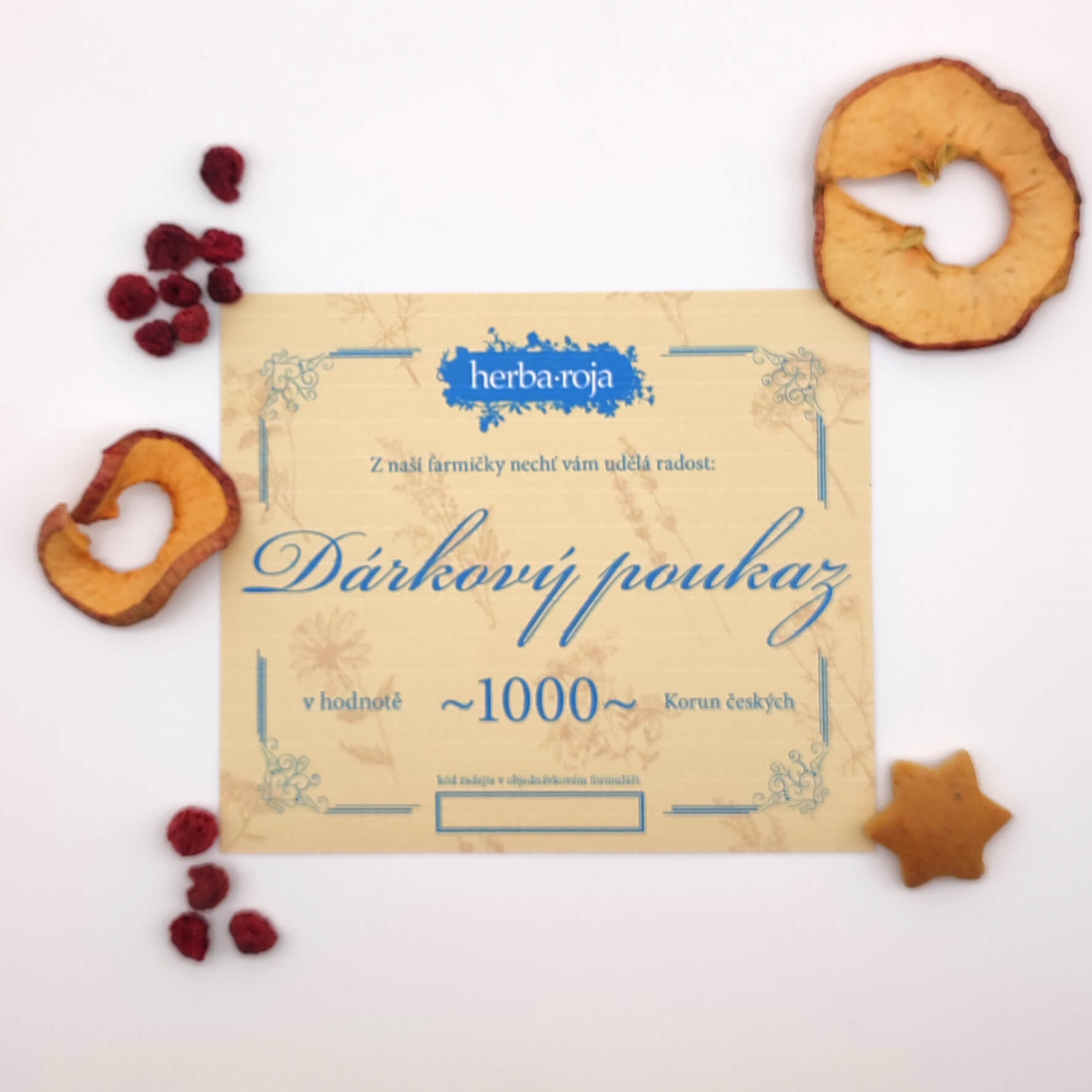 Dárkový poukaz nelze využít na již zlevněné produkty na našem e-shopu Herba·Roja.