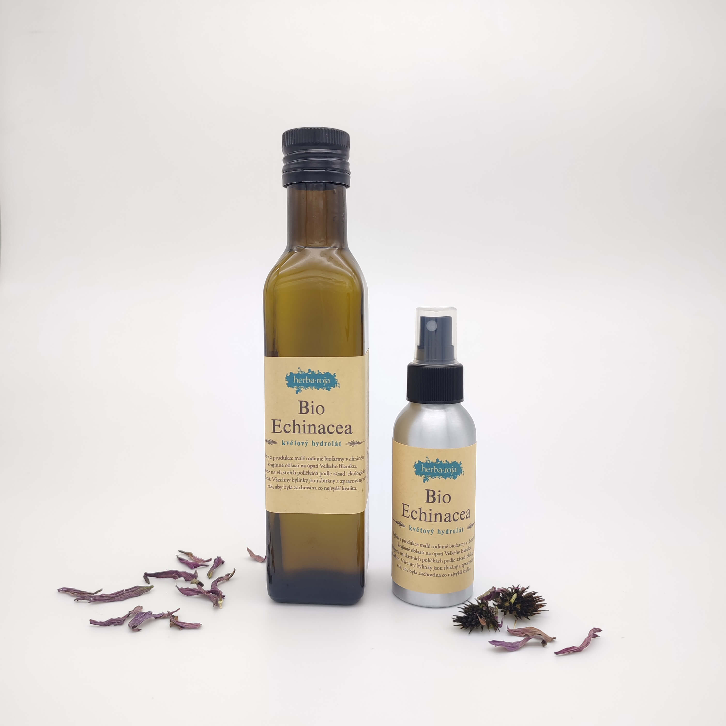Květová voda z BIO echinacey bojuje proti bolestivému akné, kožním problémům a skvrnám na obličeji. Dodává pokožce i celému tělu vitalitu, hojí rány a pomáhá také proti svědivým bodnutí od hmyzu.