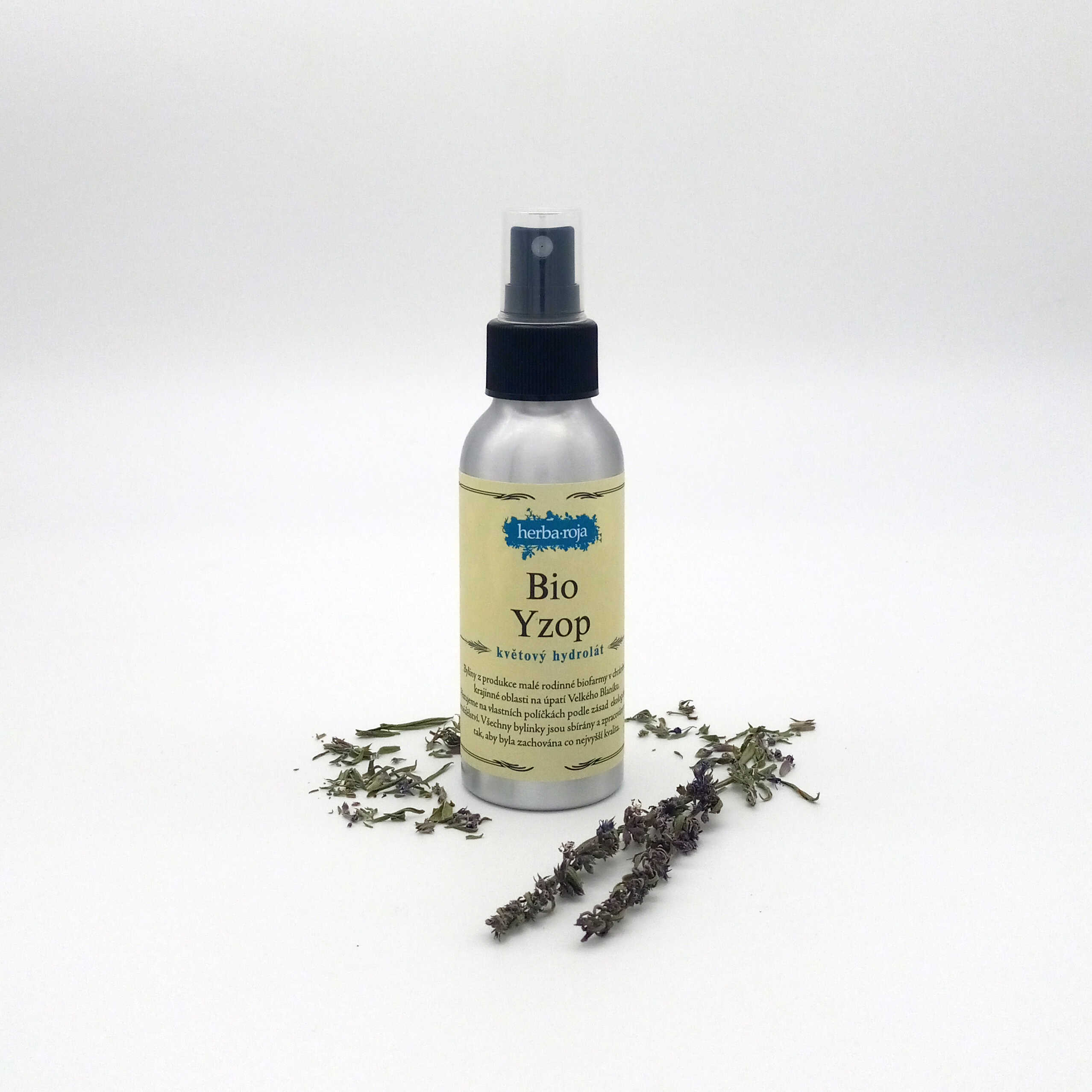Květová voda z ručně sbíraného yzopu lékařského vzniká několikahodinovou destilací bez chemických konzervantů. Obsahuje éterické oleje, má osvěžující překvapivou vůni, která přináší energii. Blahodárně působí na záněty krku, proto hydrolát můžete využít i jako kloktadlo.