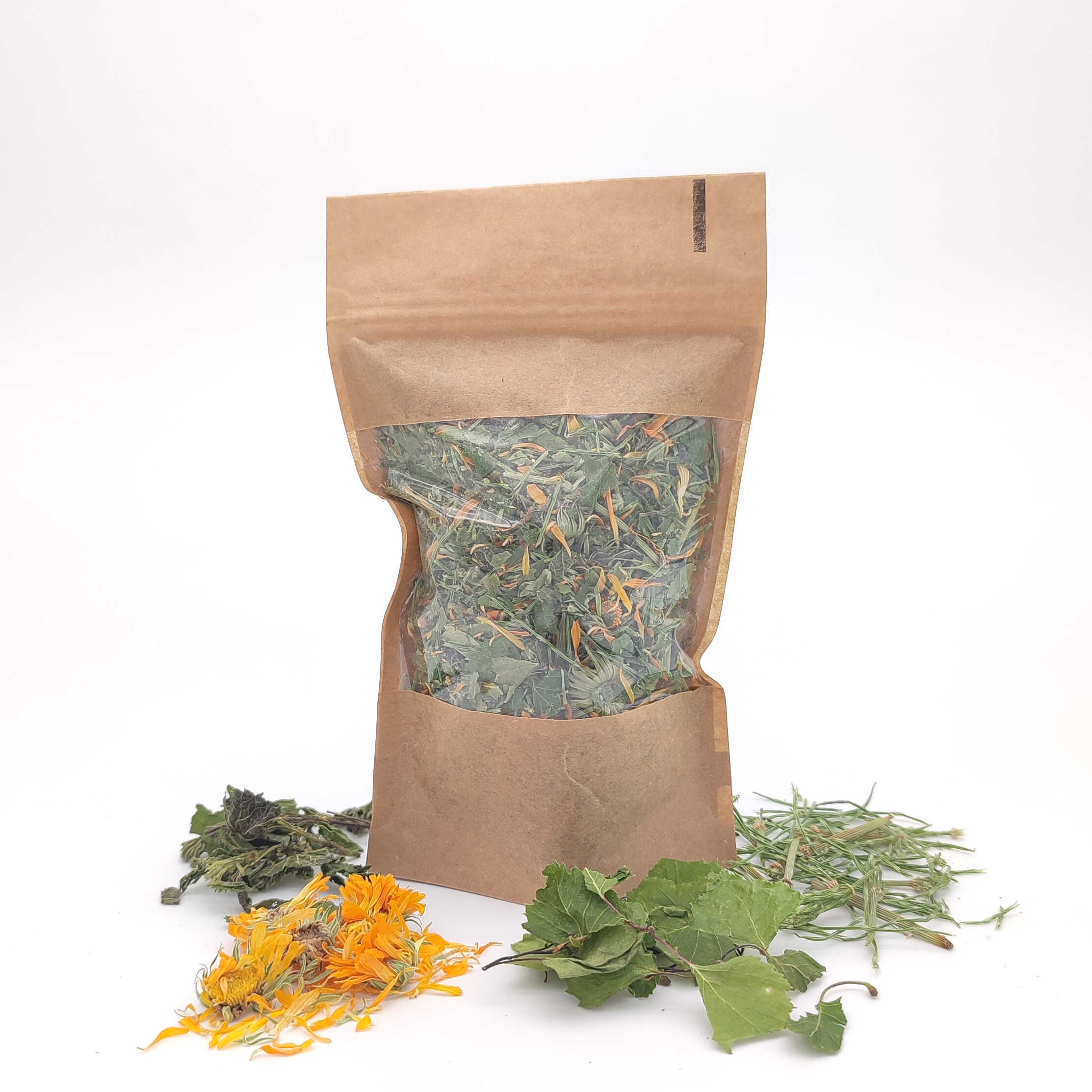 Bylinky, které jsou obsaženy v čajové směsi, ručně sbíráme na našich polích a loukách v BIO režimu v CHKO pod horou Blaník. Každou bylinu sušíme zvlášť. Tuto čajovou směs jsme namíchali na základě potřeb našich klientů a klientek.